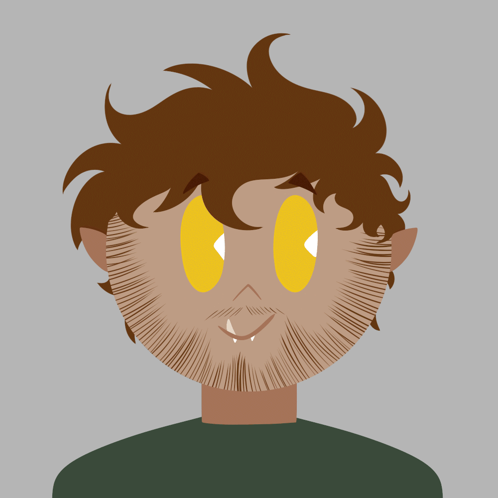 A gentle, cuddly, but tall and strong werewolf who’d always had a certain fondness for a friend of his, even after he moved to the opposite side of the continent. His wife was never a fan of it.His strong need to be loved has caused him a lot of resentment when that need wasn’t met, with several people in his life that he was supposed to be close to. Perhaps he could’ve reached out more himself instead of running away from it.His recklessness and tendency to rush into things have led him to make many mistakes, one of which forced him to leave his family behind. One day, he’ll return, and see his old friend again, too.